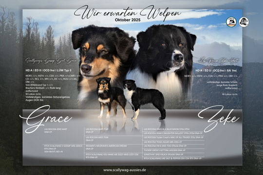 Unsere Wurfplanung steht nun endlich fest. Mehr Infos gibt es in Kürze unter Wurfplanung 2017. Soviel schon einmal vorweg. Wir erwarten aus dieser Verpaarung sportlich, wesensstarke und leichtführige Aussies in allen Farben. Eine Interessentenliste besteht bereits. Wer gerne mehr über den Wurf erfahren möchte, kann uns gerne anrufen und/oder per Mail anschreiben.
