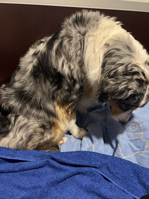 Auch bei der Farbwahl hatte Lizzy definitiv andere Pläne als ich. Eine rote Hündin war geplant, Emily Erdbeer sollte sie heißen und Lizzy schenkt mir eine kleine Black Tri wie Uroma Lillie. Schau ich mir die zwei Würfe von Lizzy an, scheint sie wohl nur red merle und black tri machen zu können und gerne Jungs in der Überzahl. Also bin ich aktuell auf Namenssuche. Auch hier drin bleibe ich mir wohl treu, es wird nie der Name, den ich mir vorher ausgesucht habe.